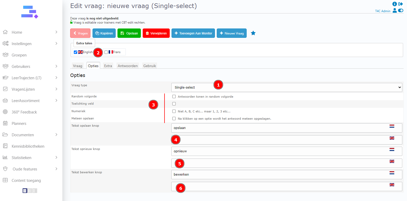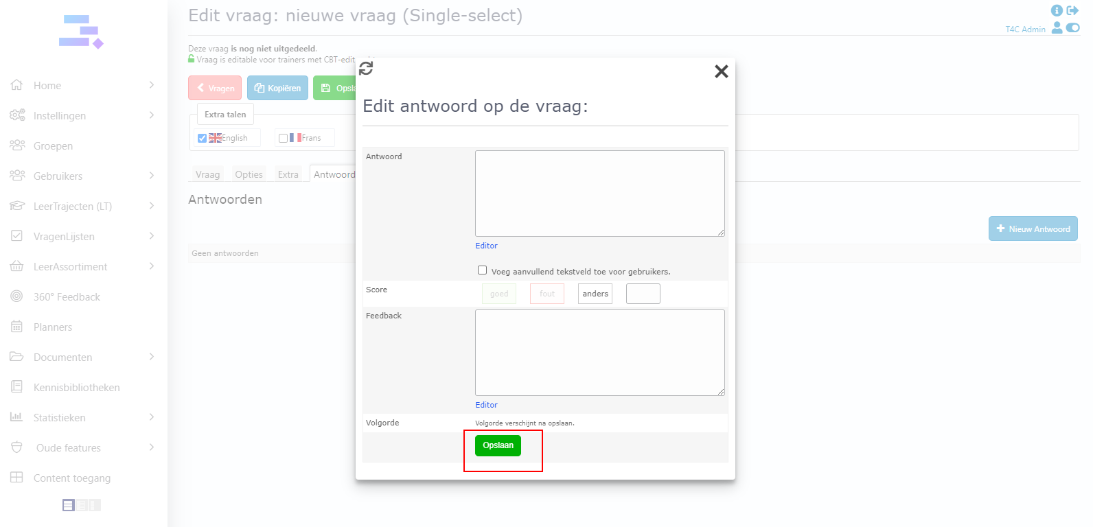 6. Fill in the information of the answer, choose a cbt for it and then click Opslaan to save.