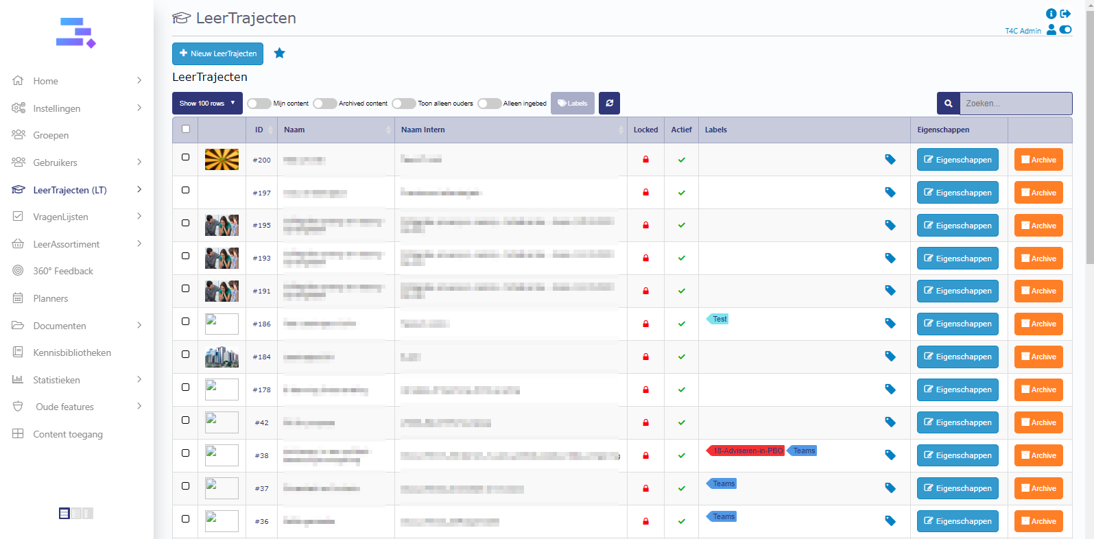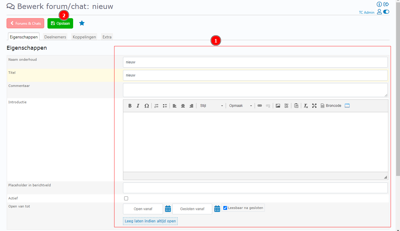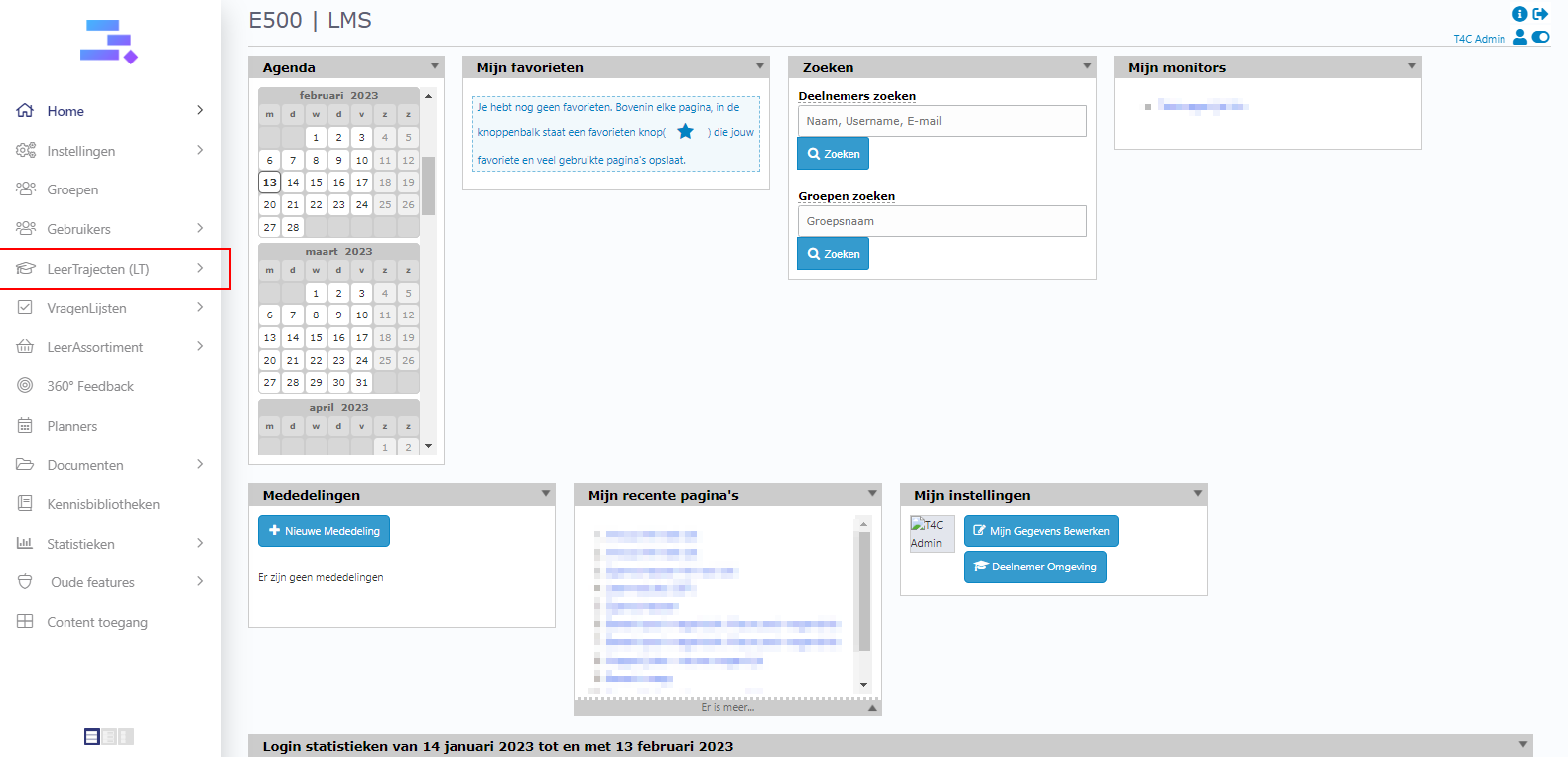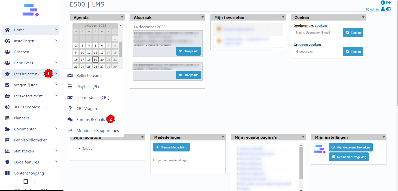 - Login with your administration account. Hover into Leertraject and click Forum&Chat.