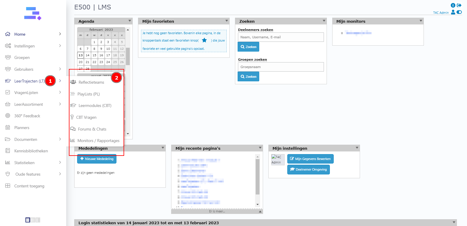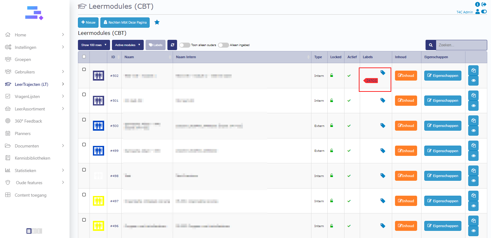 1. Login with your administration account. Hover into Leertrajecten and choose the module with a course where you want to add a label to.