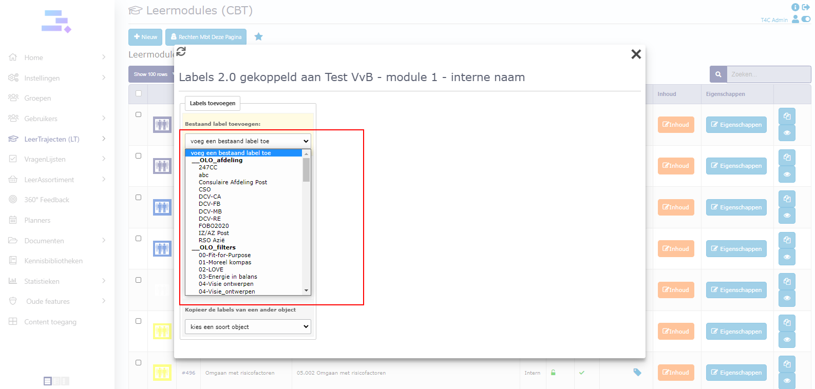 3. Click voeg een bestaand label toe and choose a label available for the course. After click on any label, it will be auto choosed