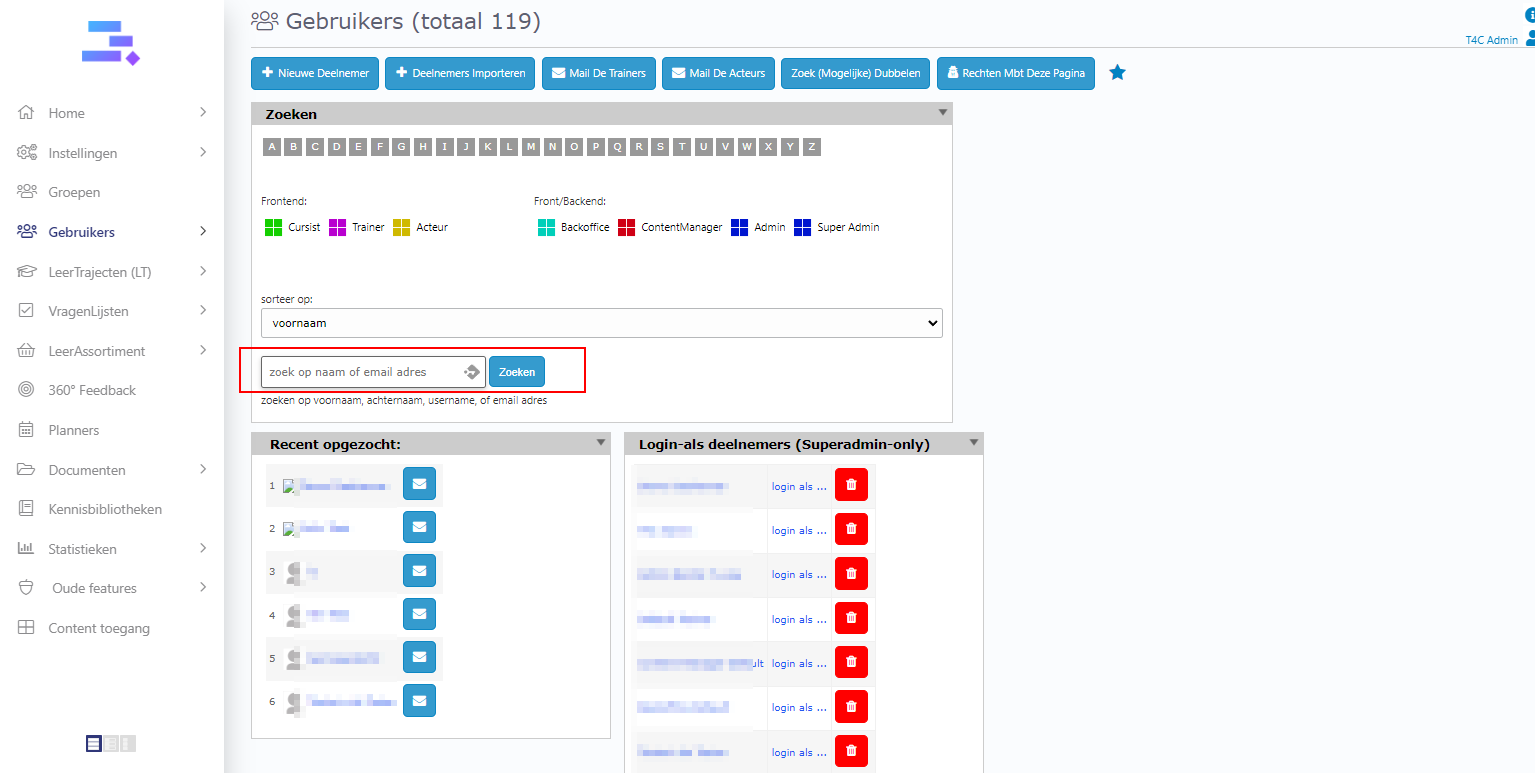 1. Login with your administration account. Click on Gebruikers .