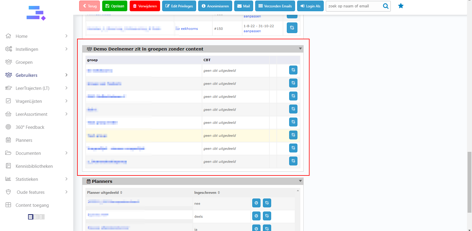 Then it will appear at Demo Deelnemer zit in groepen zonder content block!