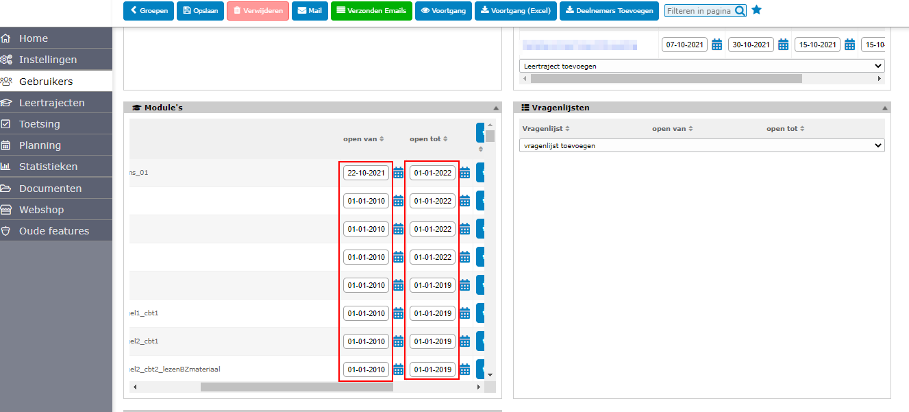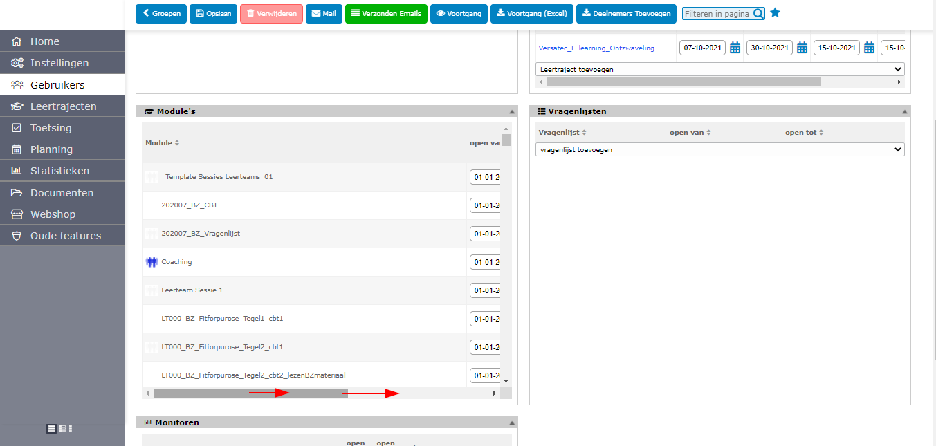 2. On the page Groepen, choose a group where you want to change start and end date for the modules in it.
