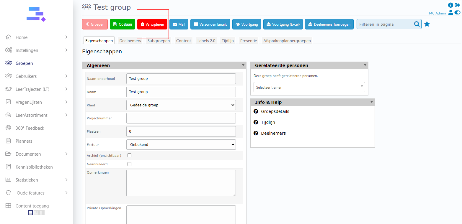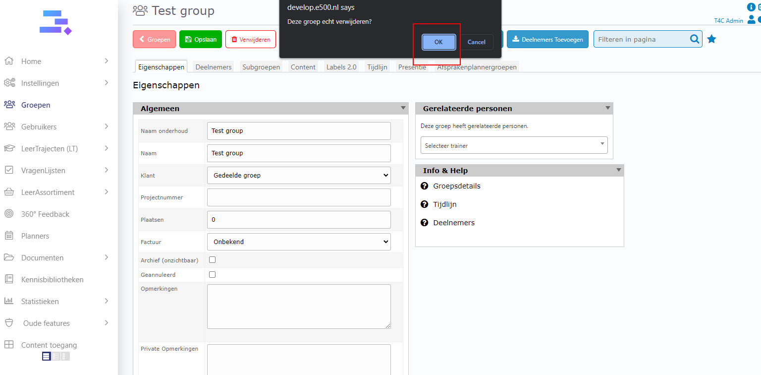 2. On group detail, click verwijderen and next click Ok to delete this group.