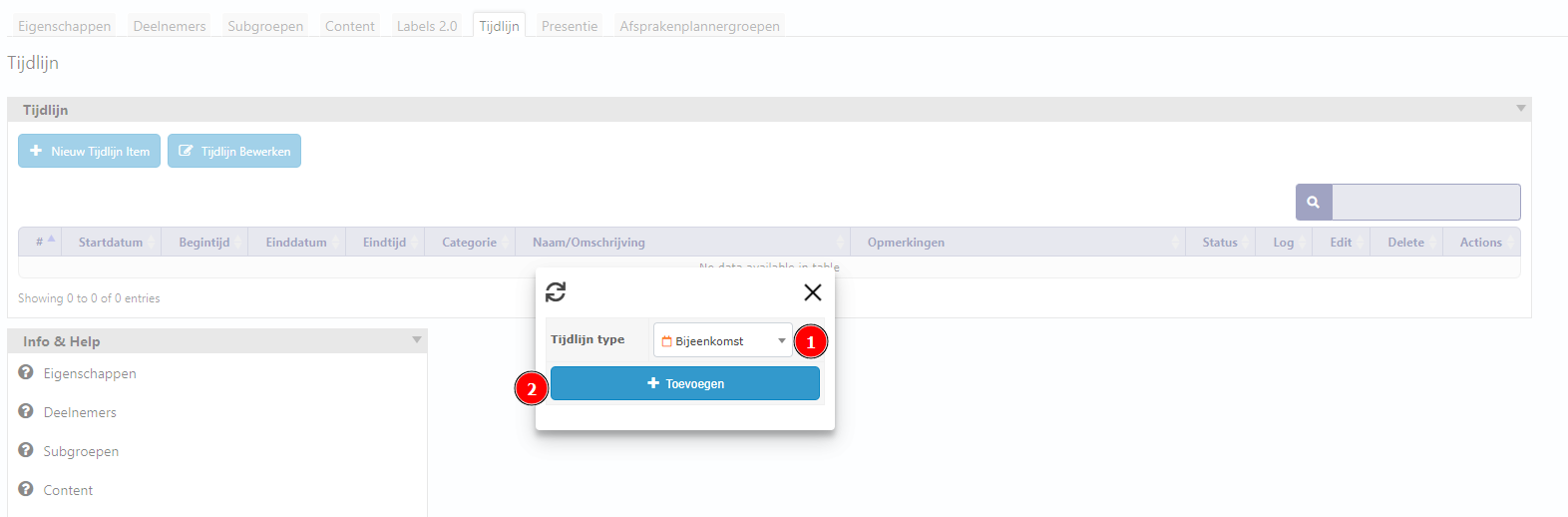 At Tijdijn type dropdown, sellect Bijeenkomst and click Toevoegen to save it