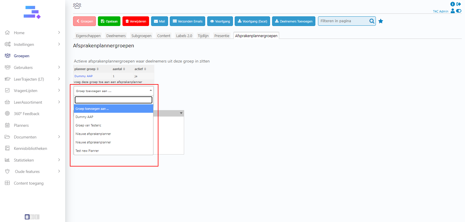 Then, in group go to Afsprakenplannergroepen tab, then you can see the sellection dropdown to choose any plan and share it for this group.