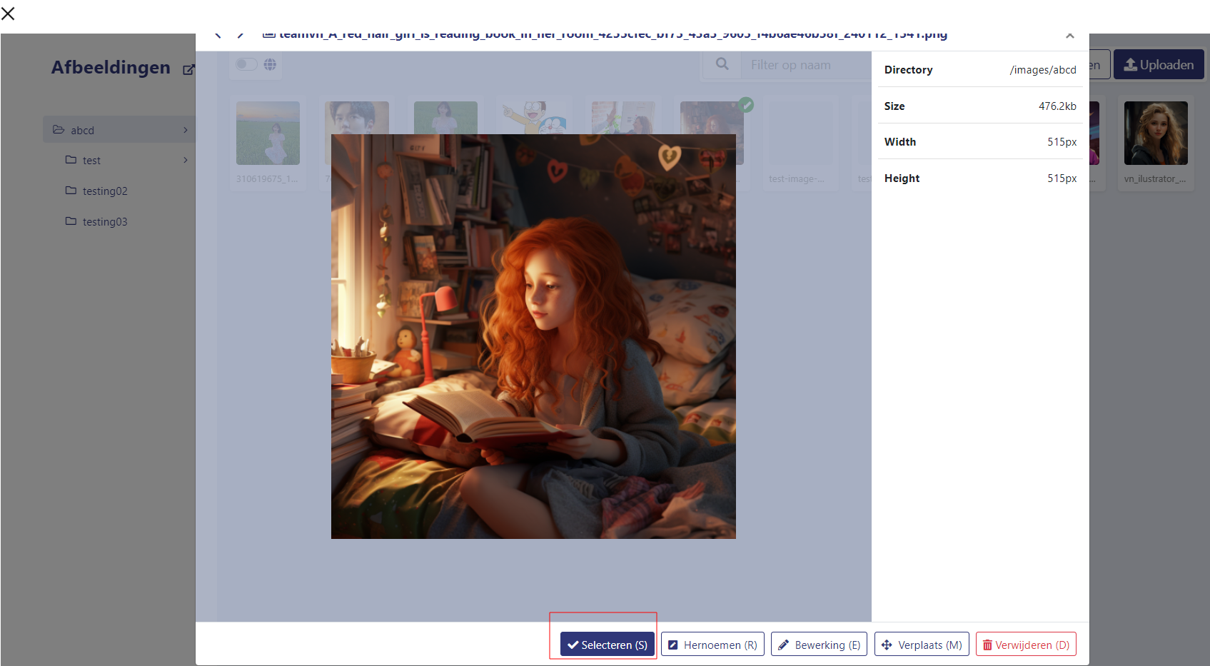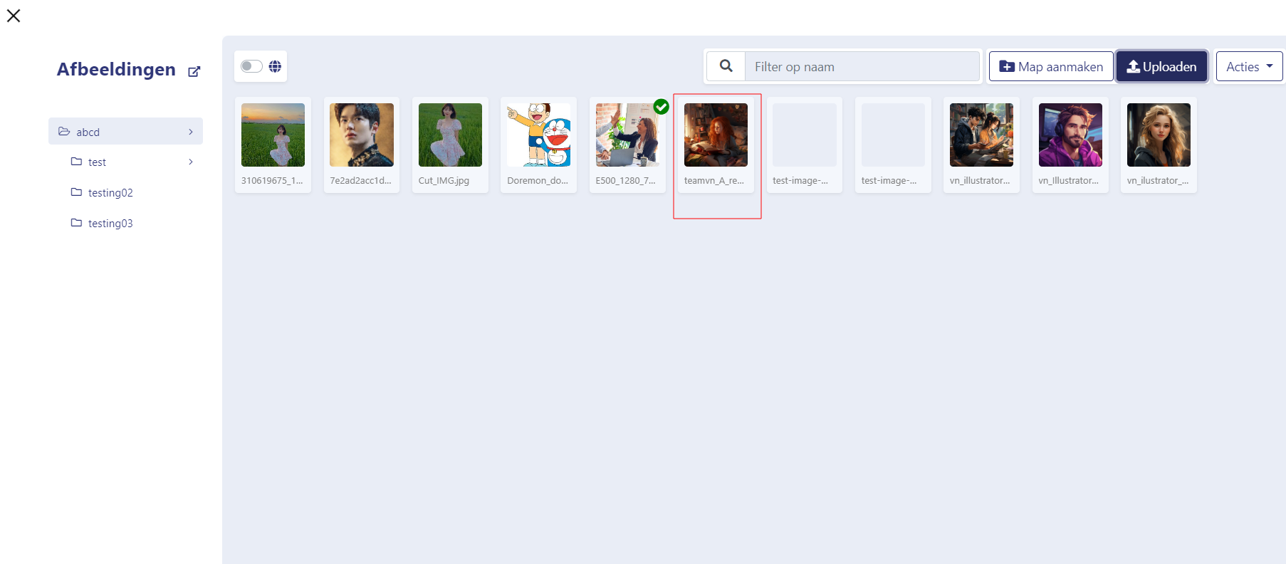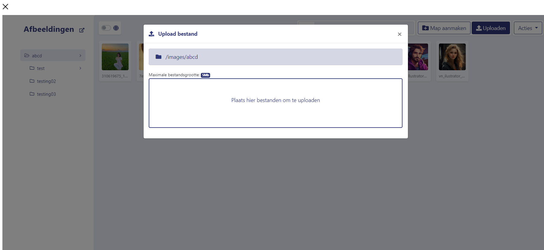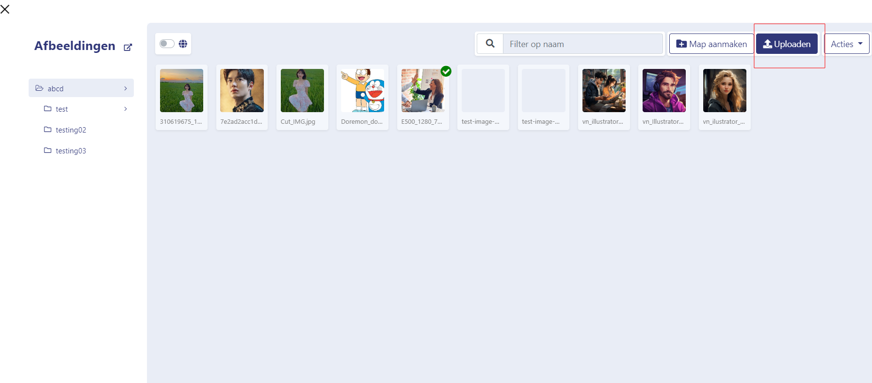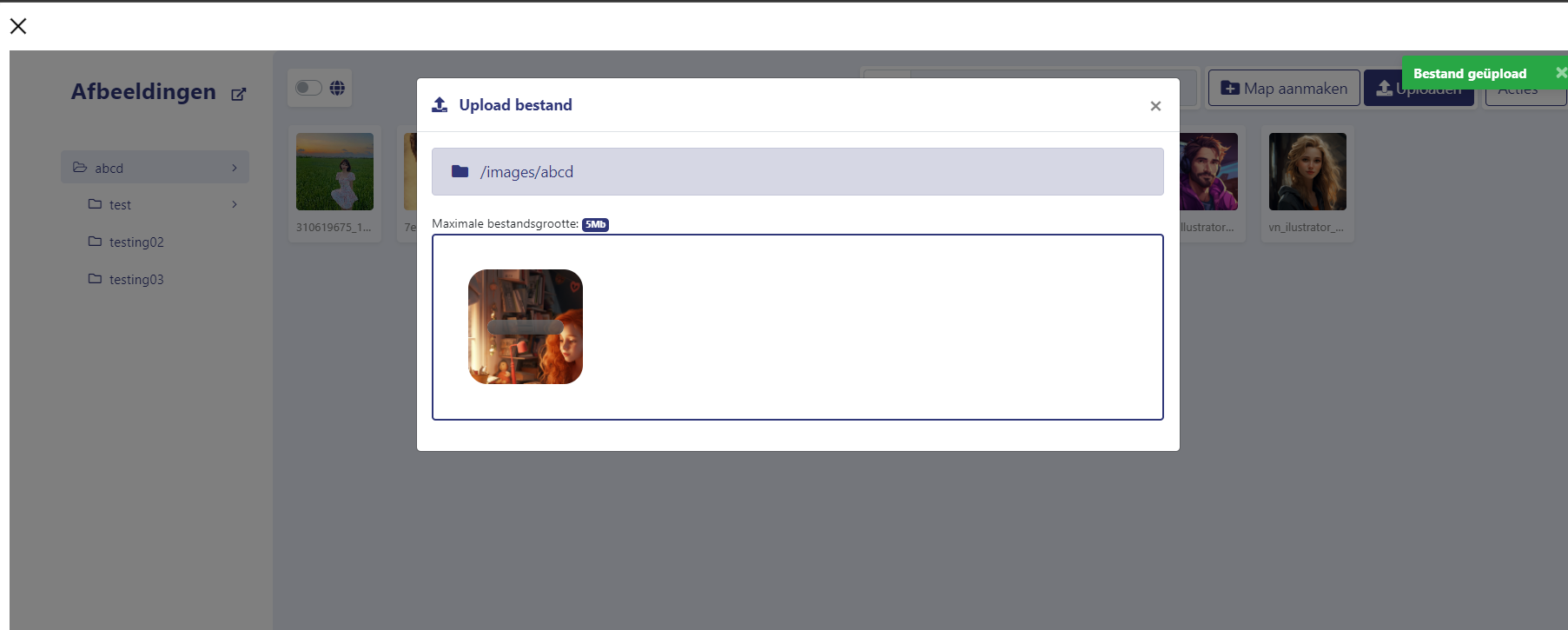 3. A popup appear with many folder which have a lot images are ready for you to choose. But if you want a new image from your computer. Let’s choose a folder for image background and click on Afbeelding Uploaden to up a new image from your computer.