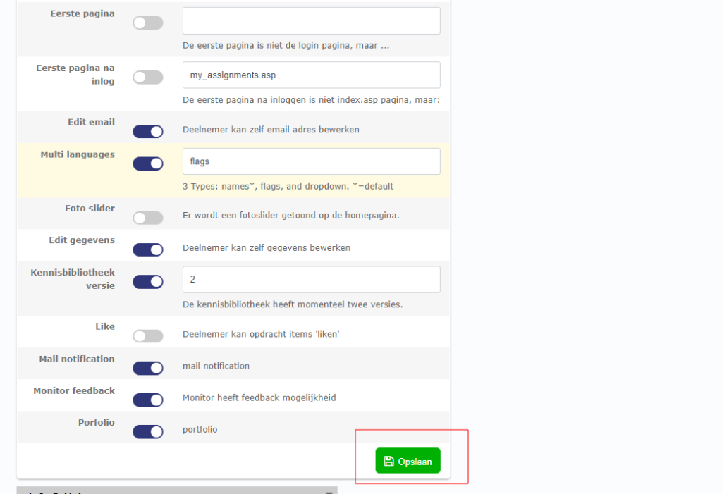 7. Last step is scroll down and click Opslaan to save the change. Now the new background is ready. You can log out and see it at the login page