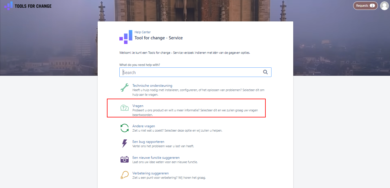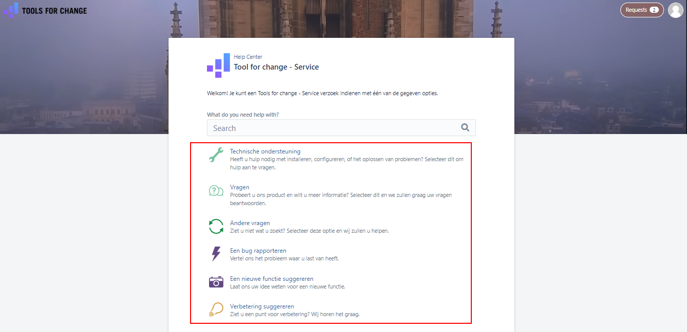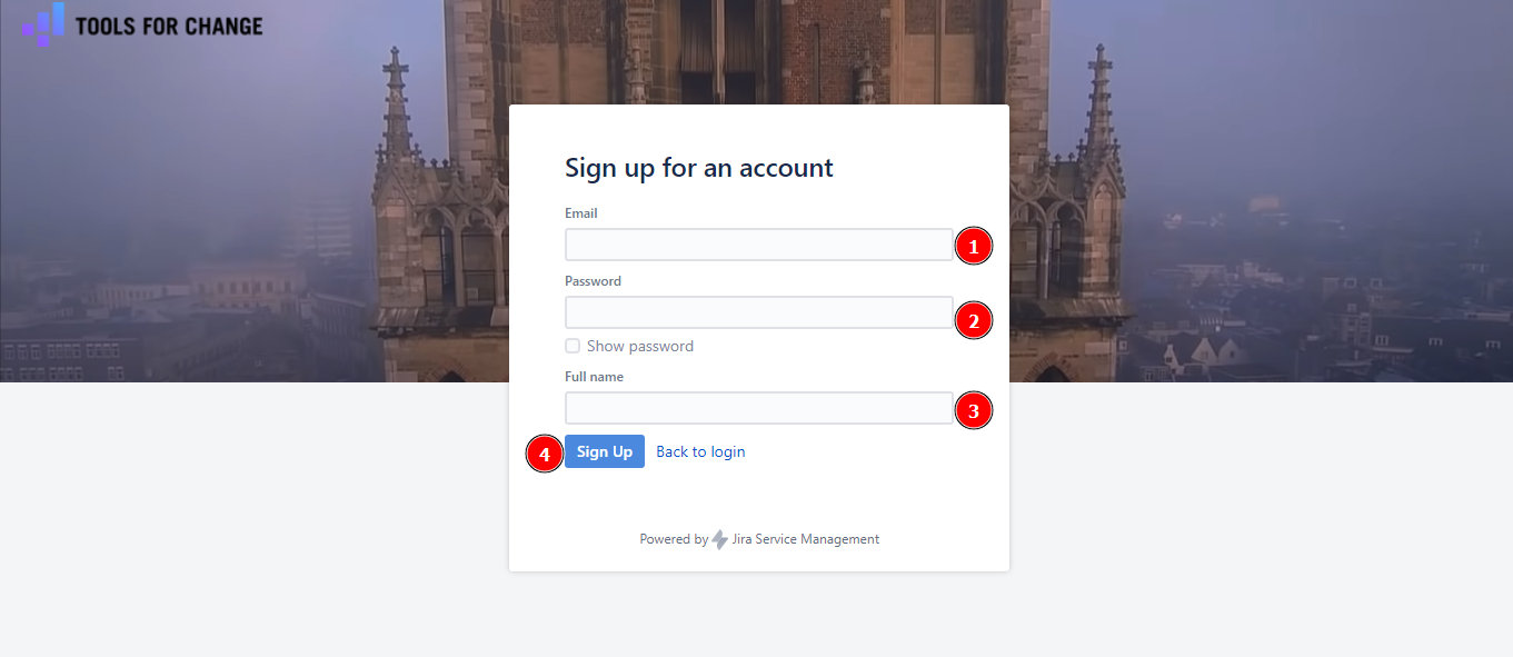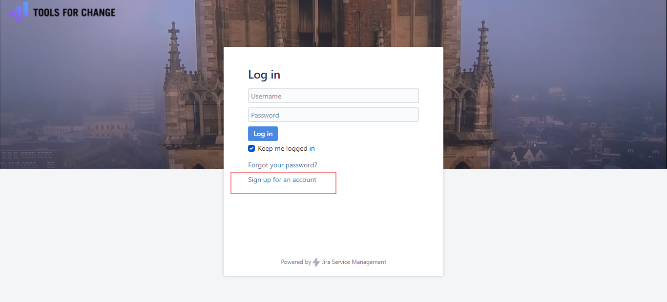 Access to this link https://support.tools-for-change.nl/servicedesk/customer/portal/2. Then click on Sign up for an account.
