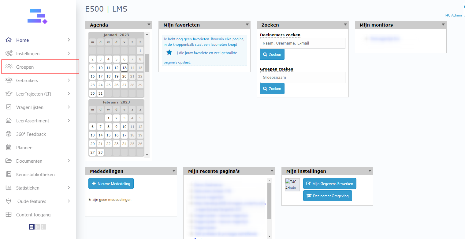 1. Login with your Administrator account. Click on Groepen.